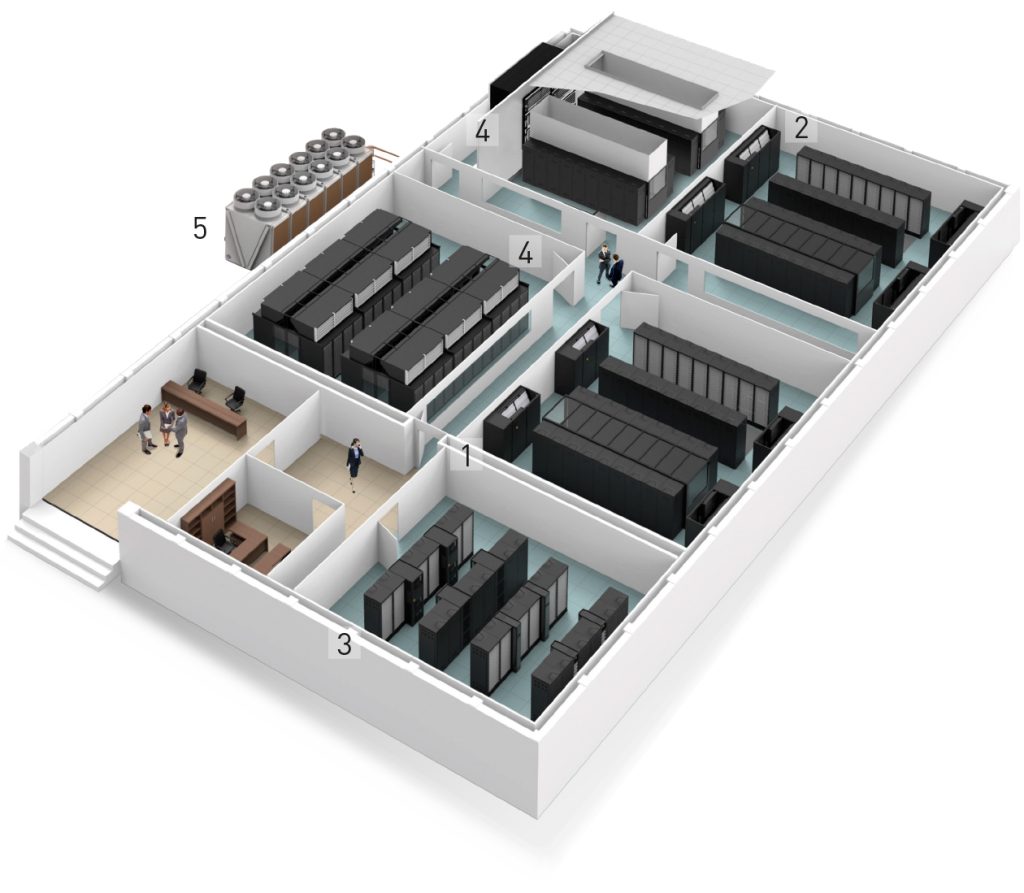 Air conditioning systemen voor grote datacenters worden doorgaans volgens de volgende concepten ontworpen: